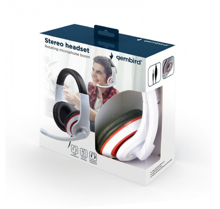GEGBIRD HEADSET ΛΕΥΚΟ/ΚΟΚΚΙΝΟ MHS-003