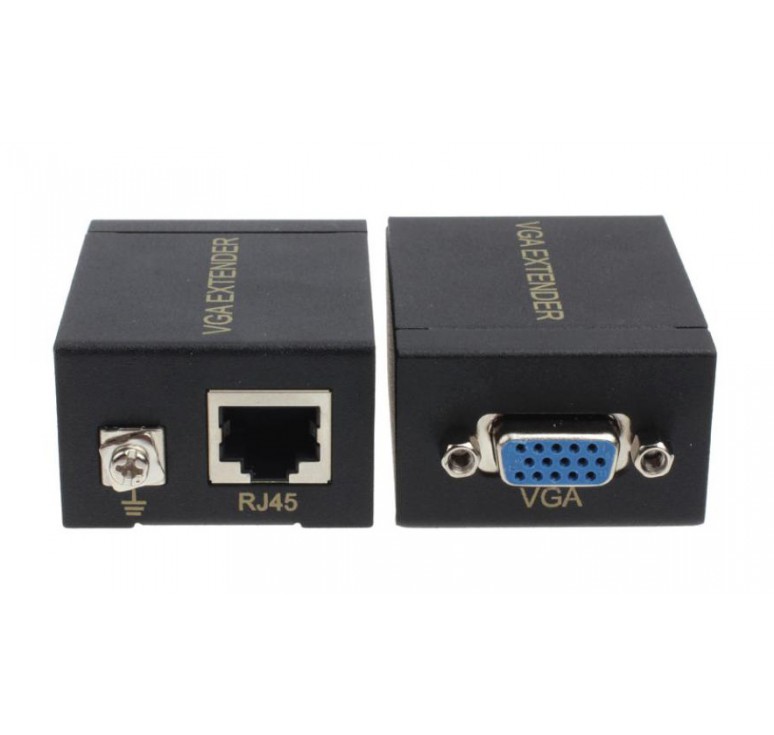 The VGA extender includes a signal transmitter and a receiver.The transmitter which is linked with main engine will convert the VGA signal to standard TCP/IP and transmit by internet.The receiver which is connected with the display will convert the standard TCP/IP signal.In brief, extend the VGA signal 60 meters bu a CAT-5e/6 cable.