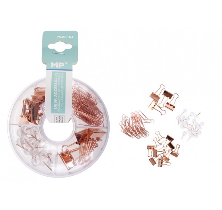 MPMσετ γραφείου PA360-04 με συνδετήρες, κλιπ & πινέζες, ροζ χρυσό