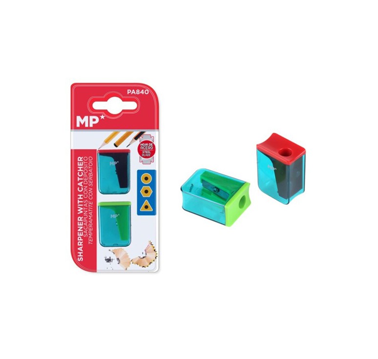 MPMσετ ξύστρα μολυβιών με κάδο PA840, κόκκινη & πράσινη, 2τμχ