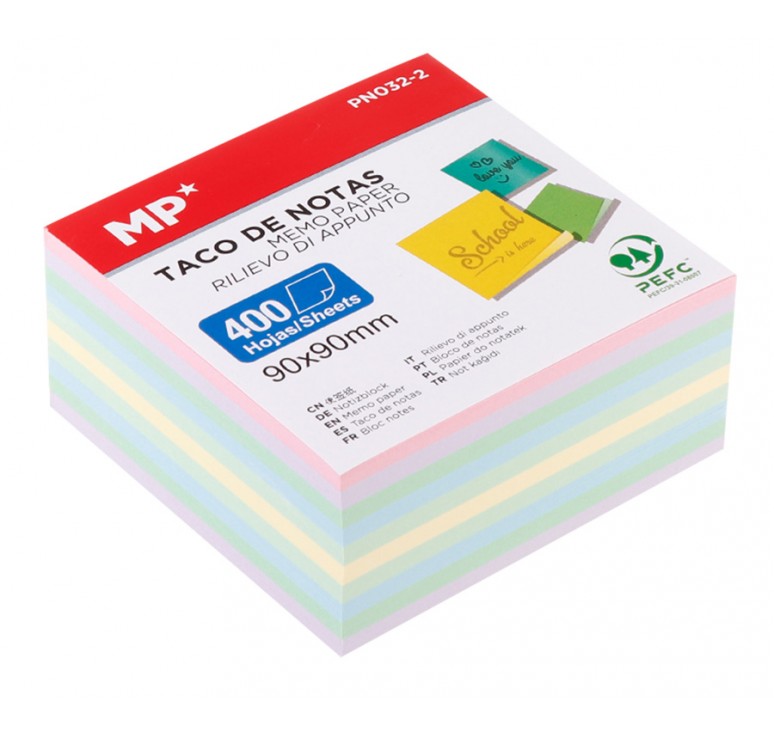 Έχουν μέγεθος 90x90mm και η συσκευασία διαθέτει 400 φύλλα.