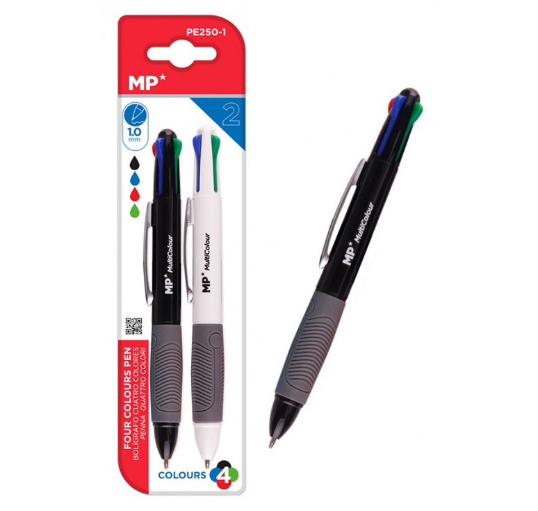 Στυλό διαρκείας της MP με μηχανισμό προώθησης και ανάκλησης, με 4 διαφορετικά χρώματα και μύτη πάχους 1mm.
