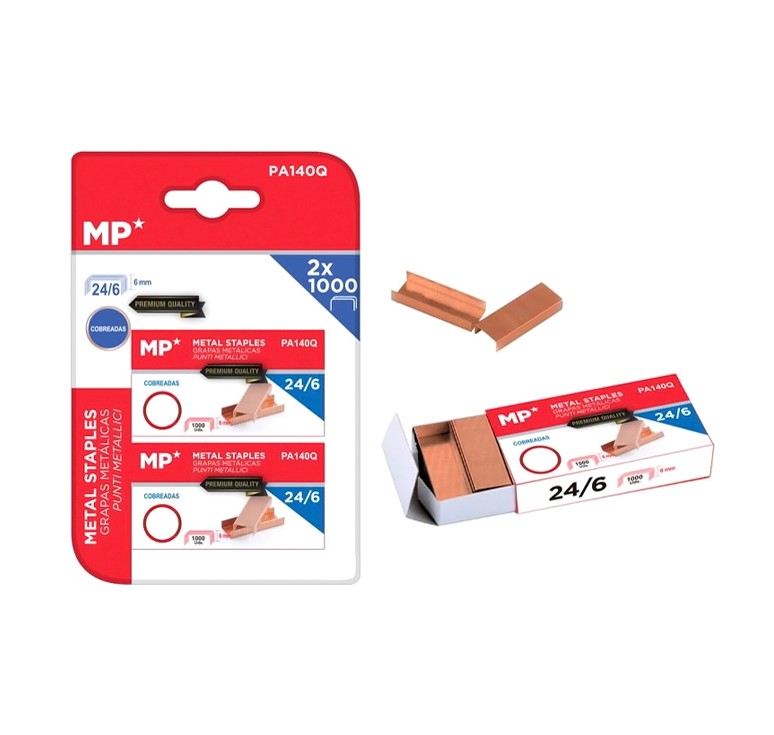 Αρχική > Είδη Γραφείου & Εξοπλισμός>Αναλώσιμα - Είδη Γραφείου>Γραφική Ύλη>MPMανταλλακτικά συρραπτικού 24/6 PA140Q, copper plated, 2x 1000τμχ