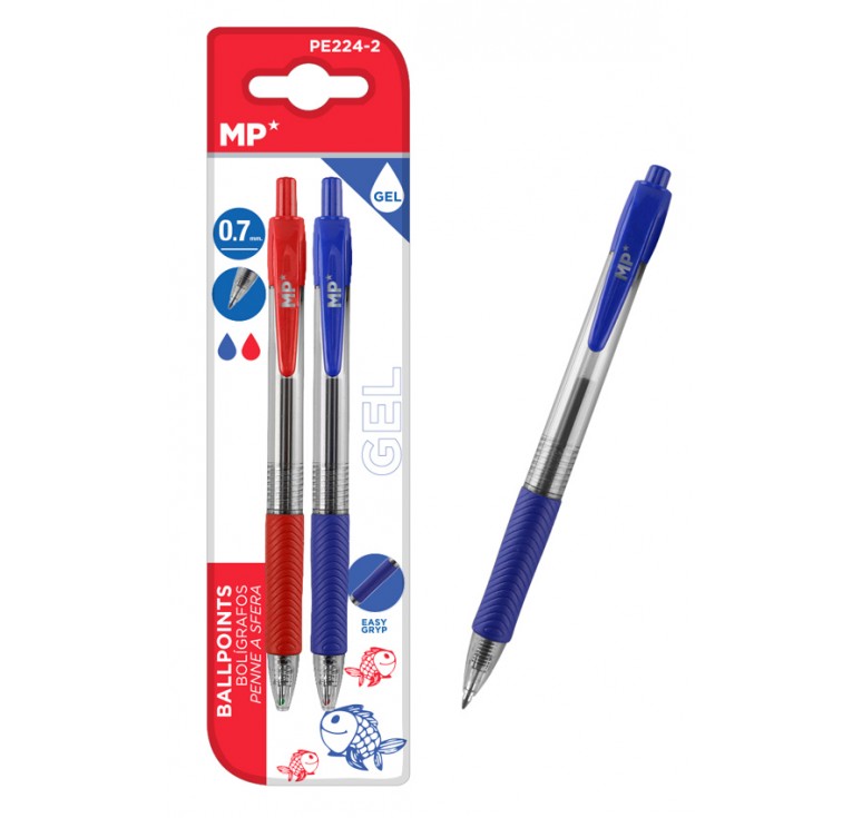 MPMστυλό διαρκείας gel PE224-2, 0.7mm, μπλε & κόκκινο, 2τμχ