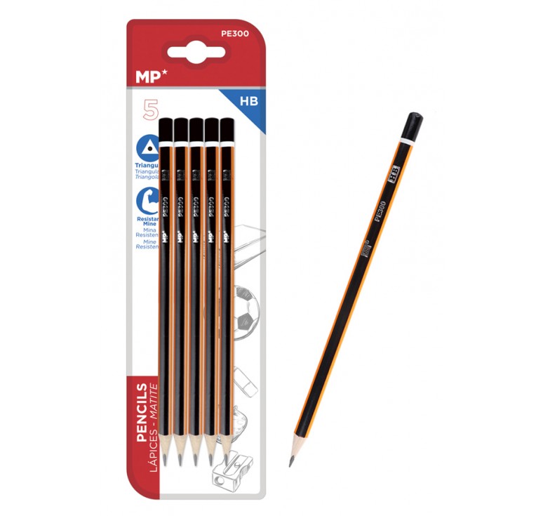 MPMξύλινο μολύβι PE300, τρίγωνο, HB, 5τμχ