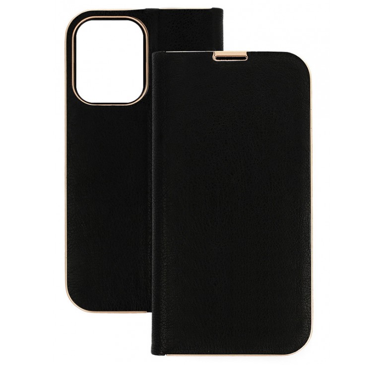 Η θήκη Book είναι ο τέλειος συνδυασμός προστασίας και στυλ. Είναι κατασκευασμένη από ανθεκτικό πλαστικό υλικό και συνθετικό δέρμα σε μαύρο χρώμα με χρυσό περίγραμμα. Διαθέτει εσωτερικό μαγνήτη που κρατάει την θήκη κλειστή προσφέροντας μεγαλύτερη ασφάλεια. Επιπλέον, χάρη στον έξυπνο σχεδιασμό της μπορεί να χρησιμοποιηθεί και σαν βάση στήριξης ώστε να παρακολουθείτε video, φωτογραφίες ή ακόμα και ταινίες και να εργάζεστε με την επιθυμητή γωνία θέασης χωρίς να το κρατάτε στα χέρια σας!