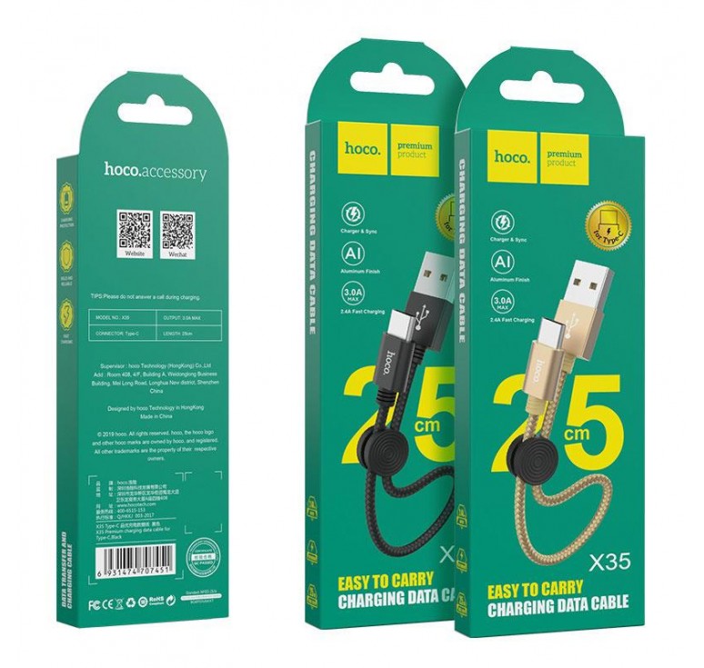 HOHO X35 PREMIUM ΚΑΛΩΔΙΟ ΜΕΤΑΦΟΡΑΣ ΔΕΔΟΜΕΝΩΝ , USB ΣΕ TYPE-C , ΜΑΥΡΟ