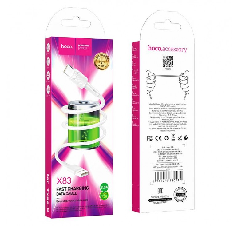 HOHO X83 ΚΑΛΩΔΙΟ ΦΟΡΤΙΣΗΣ VICTORY TYPE-C, ΛΕΥΚΟ
