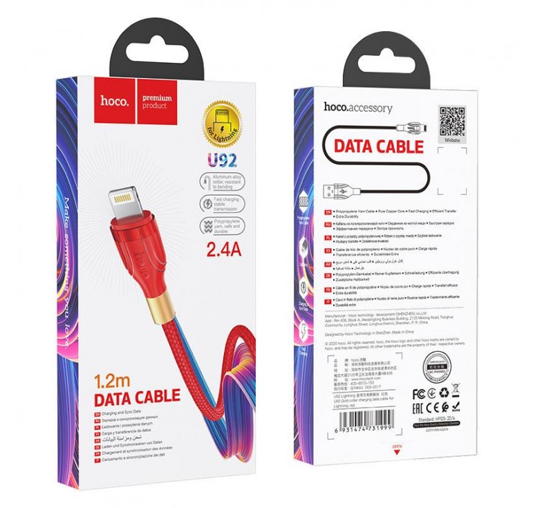 HOHO U92 GOLD COLLAR ΚΑΛΩΔΙΟ ΦΟΡΤΙΣΗΣ LIGHTNING, KOKKINO