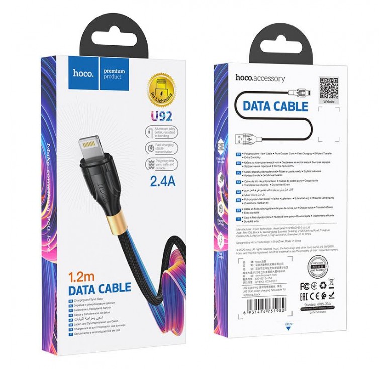 HOHO U92 GOLD COLLAR ΚΑΛΩΔΙΟ ΦΟΡΤΙΣΗΣ LIGHTNING, MAYRO