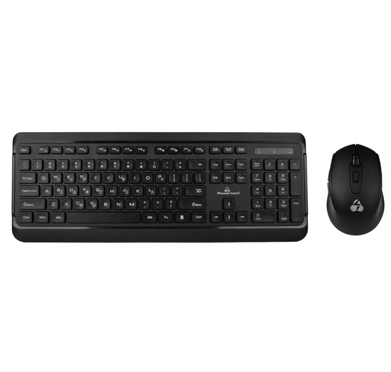 Set περιφερειακών για PC από την Powertech που αποτελείται από ασύρματο πληκτρολόγιο και ασύρματο οπτικό ποντίκι.