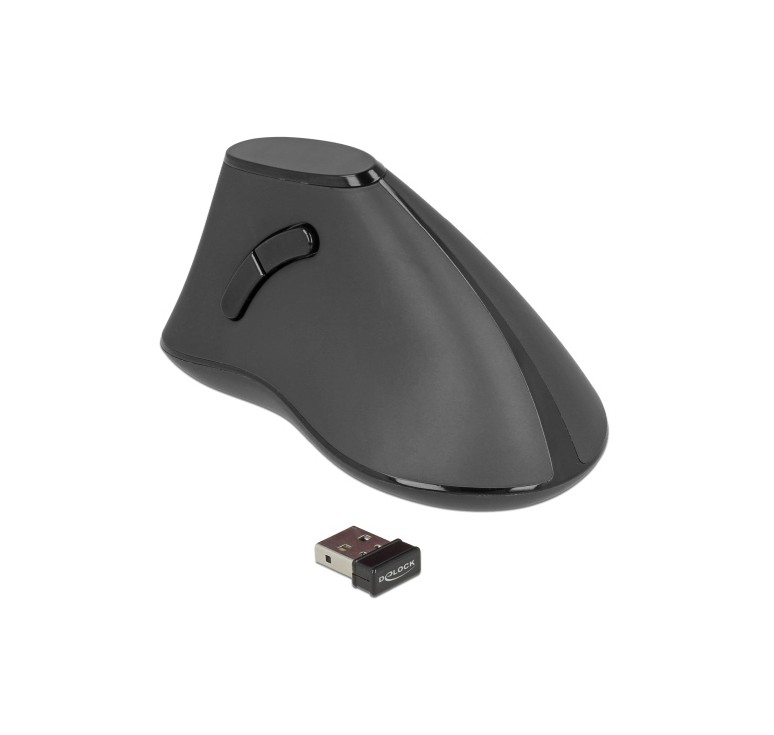 Αυτό το ασύρματο κάθετο ποντίκι της Delock είναι κατάλληλο για δεξιόχειρες και συνδέεται στον υπολογιστή μέσω USB receiver.