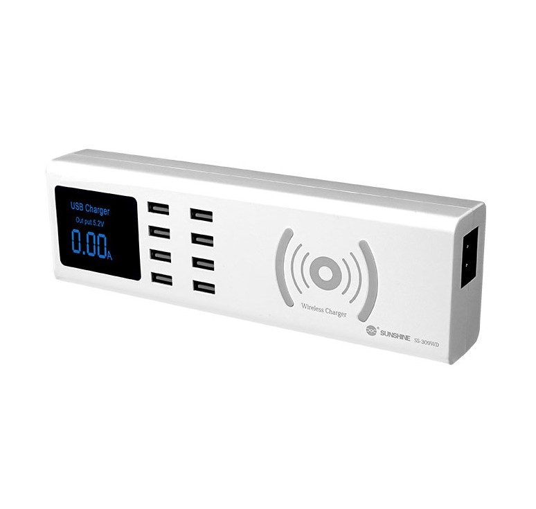 Σταθμός φόρτισης με 8x θύρες USB, για ταυτόχρονη φόρτιση έως 8 συσκευών, με μέγιστη απόδοση 8A. Διαθέτει οθόνη για την ένδειξη της απόδοσης φόρτισης και υποστηρίζει ασύρματη φόρτιση με απόδοση έως 10W.