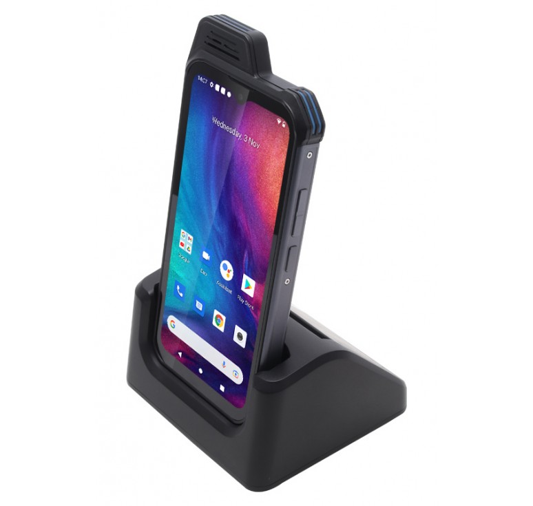 Επιτραπέζια βάση φόρτισης, συμβατή με το smartphone W888 της Uniwa. Διαθέτει θέση για την φόρτιση του smartphone μέσω της θύρας USB-C, αλλά και θέση για την φόρτιση της μπαταρίας εκτός της συσκευής.