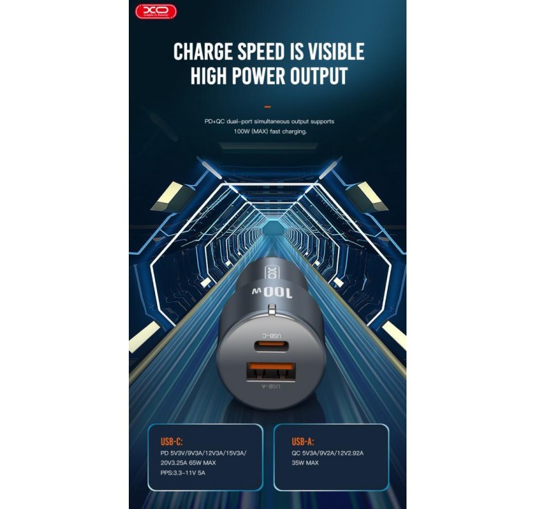Συνολική ισχύς: TYPE-C(65w)+USB-A(35W)= 100W MAX