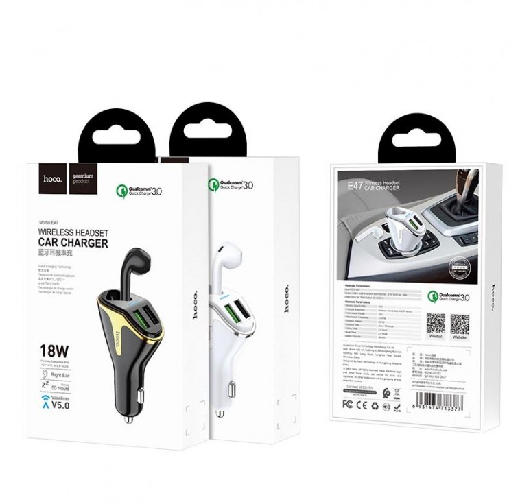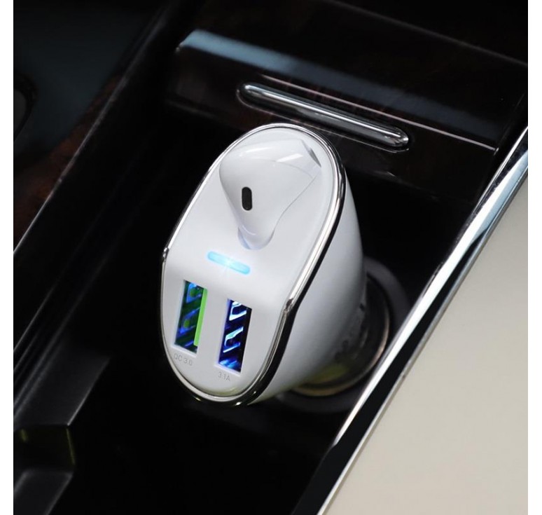 HOHO E47 ΦΟΡΤΙΣΤΗΣ ΑΥΤΟΚΙΝΗΤΟΥ QC3.0 ΚΑΙ ΑΚΟΥΣΤΙΚΟ HANDSFREE 2 ΣΕ 1 ΛΕΥΚΟ
