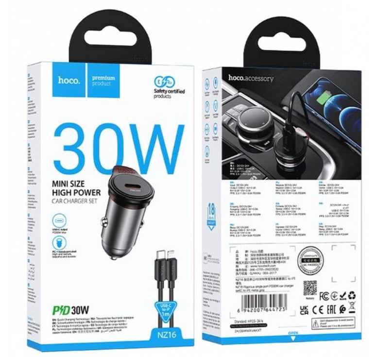 HOHO NZ16 ΦΟΡΤΙΣΤΗΣ ΑΥΤΟΚΙΝΗΤΟΥ, RIGOROUS PD30W, 1 ΘΥΡΑ , ΚΑΛΩΔΙΟ TYPE-C TO LIGHTNING, ΓΚΡΙ