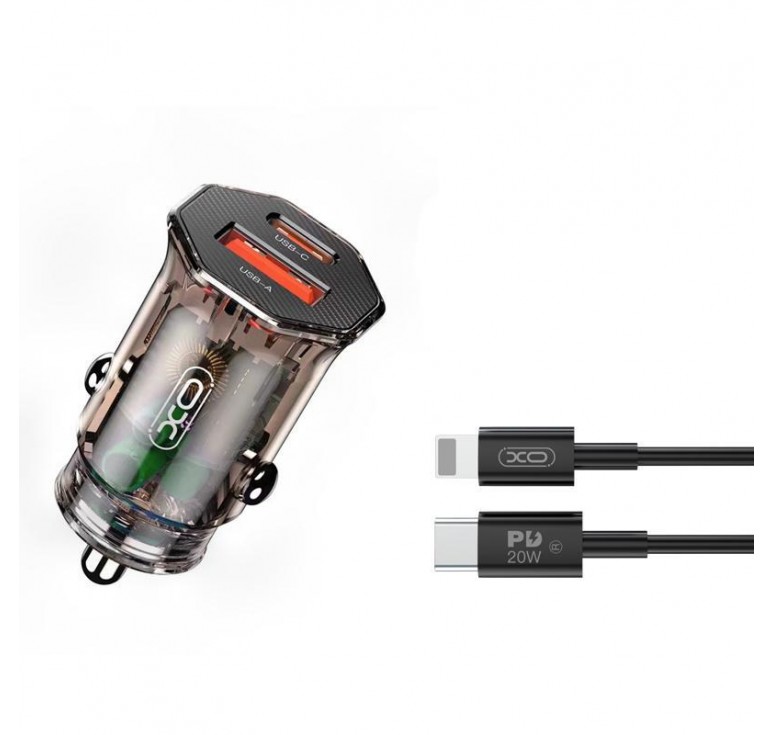 XOXCC50 TRANSPARENT ΦΟΡΤΙΣΤΗΣ ΑΥΤΟΚΙΝΗΤΟΥ PD20W+QC3.0 18W ΜΕ ΚΑΛΩΔΙΟ LIGHTNING CABLE