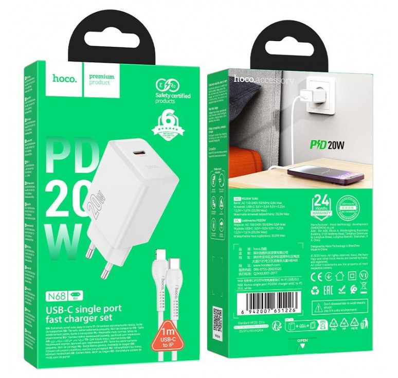 HOHO N68 NEUVO ΦΟΡΤΙΣΤΗΣ, TYPE-C TO LIGHTNING, 20W, ΛΕΥΚΟ