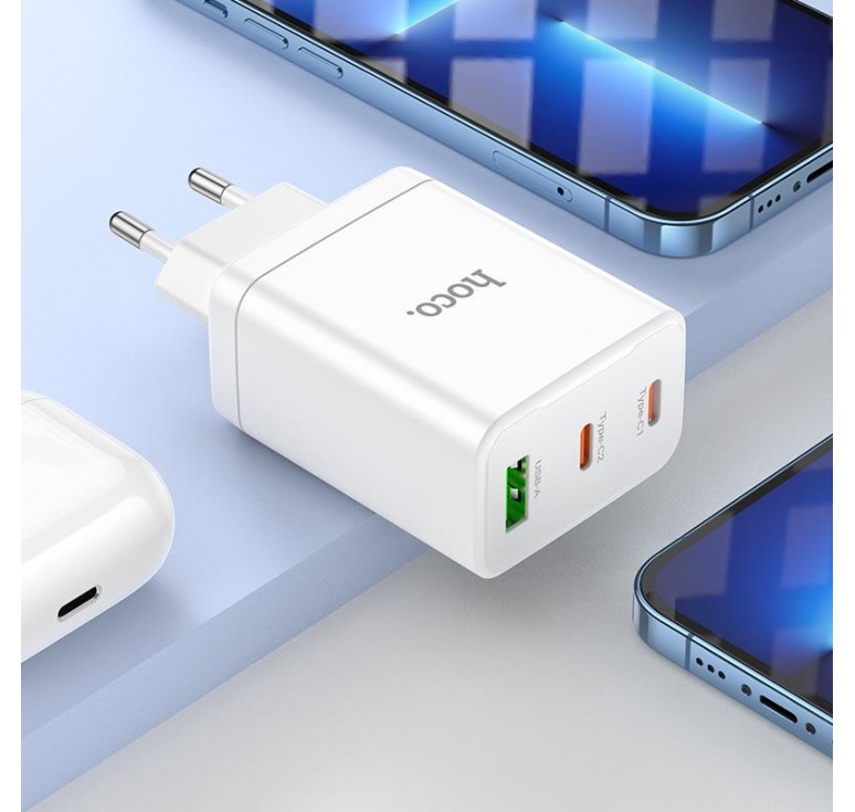 HOHO N33 START PD20W(2C1A) ΦΟΡΤΙΣΤΗΣ, 3 ΘΥΡΕΣ, ΛΕΥΚΟ, ΚΑΛΩΔΙΟ TYPE-C ΣΕ LIGHTNING