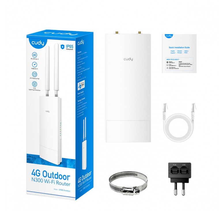 Compatible with 802.11b/g/n Wi-Fi standardsTransmit PowerCE: <20dBmFCC:<30dBmWireless ModesEnable/Disable Wireless Radio, WMMWireless SecurityWEP, WPA/WPA2, WPA-PSK/WPA2-PSKSoftware FeaturesWAN Type4G/Dynamic IP/Static IP/PPPoEDHCPServer, DHCP Client List, Address ReservationDynamic DNSCompatible with 15 more DDNS providersNATPort Forwarding, Port Triggering, UPnP, DMZVPN Sever & ClientPPTP/L2TP/OpenVPN/WireGuard/IPSec/ZerotierCWMP ProtocolTR069 / TR098 / TR111 / TR181ACS Server CompatibilityGenieACS, OpenACSManagementAccess Control, Local Management, Remote Management, Wake on LANTTLExtend/Spoof/CustomDNSCloudflare/Google/CustomInternet ProtocolsIPv4 / IPv6 IPv6RelayDynamic(SLAAC/DHCPv6)Static (Fixed IP)PassthroughMAP-E (Dual-stack)DS-Lite (Dual-stack)SMSSend/Receive4G Band LockSupportOthersPackage Contents2× detachable 4G antennas24V/0.5A passive PoE adapterPole Installation AccessoryEthernet CableQuick Installation GuideSystem RequirementsMicrosoft Windows 98SE/NT/2000/XP/Vista™/7/8/8.1/10/11, MAC OS,NetWare, UNIX or Linux, Firefox 12.0, Chrome 20.0, Safari 4.0, or other Java-enabled browser Subscription with an internet service provider (for internet access)