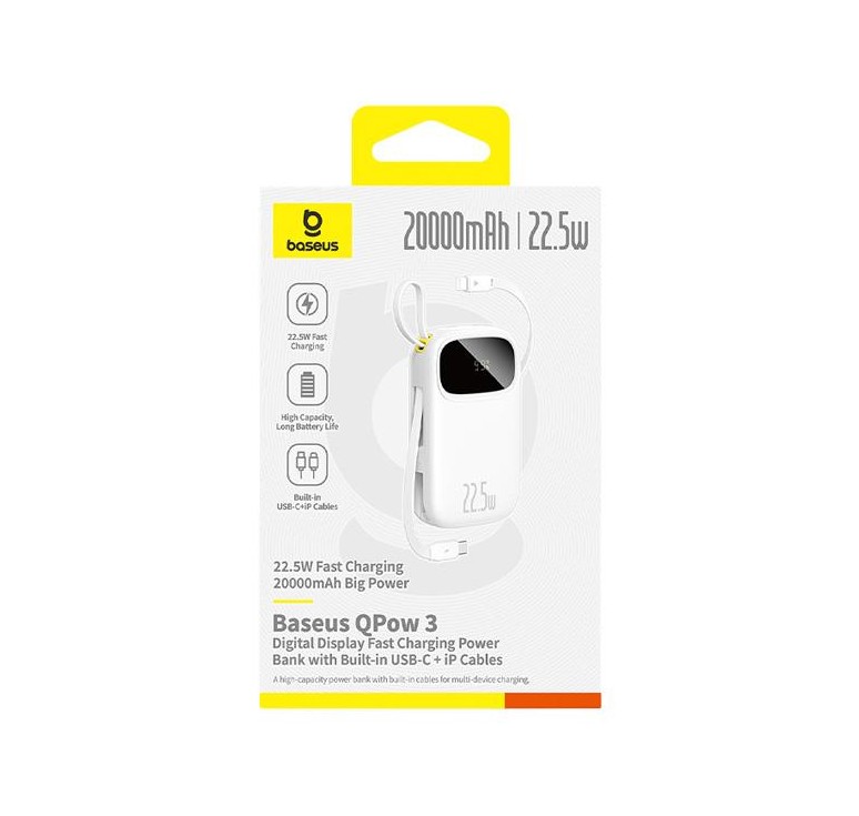 BABEUS ENERFILL FC31, POWERBANK, 10000MAh, ΜΕ 2 ΚΑΛΩΔΙΑ TYPE-C, 22.5W, ΜΕ ΨΗΦΙΑΚΗ ΟΘΟΝΗ, ΛΕΥΚΟ