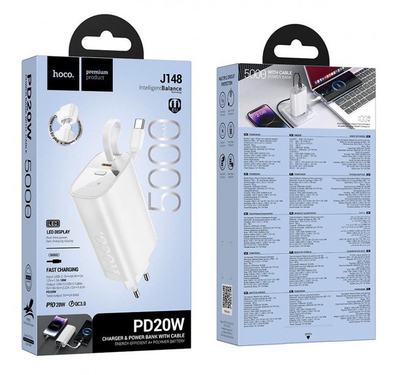 Αρχική > ΠΕΡΙΦΕΡΕΙΑΚΑ ΚΙΝΗΤΗΣ>ΠΕΡΙΦΕΡΕΙΑΚΑ>POWERBANKS>HOHO J148 HANDY PD20W POWER BANK ΤΟΙΧΟΥ, ΜΕ ΚΑΛΩΔΙΟ TYPE-C, 5.000MAH, ΛΕΥΚΟ