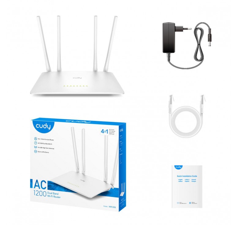 AModelWR1200Hardware FeaturesFlash64Mbit (8MB)DDR512Mbit (64MB)Antenna4 × 5dBi Fixed Omni-Directional AntennasInterface1 × 100/10 Mbps WAN Port4 × 100/10 Mbps LAN PortsButtonWPS Button, Reset ButtonExternal Power Supply12V/1ADimension (WxDxH )221*134.6*27.9mmWireless FeaturesWireless StandardsIEEE 802.11ac/n/a 5 H IEEE 802.11n/b/g 2.4 GHzFrequency5 GHz, 2.4 GHzSignal Rate867Mbps (5GHz), 300Mbps (2.4GHz)Compatible with 802.11a/b/g/n/ac Wi-Fi standardsTransmit PowerCE: <20dBm (2.4GHz), <23dBm (5GHz)FCC: <30dBmWireless ModesEnable/Disable Wireless Radio, WMMWireless Security WEP, WPA/WPA2, WPA-PSK/WPA2-PSKSoftware FeaturesWAN TypeDynamic IP/Static IP/PPPoEManagementParental ControlGuest NetworkDHCPServer, DHCP Client List, Address ReservationDynamic DNSCompatible with 15 more DDNS providersGuest Network2.4GHz guest network × 15GHz guest network × 1NATPort Forwarding, Port Triggering, UPnP, DMZVPN ClientPPTP/L2TP/OpenVPN/WireGuardOthersPackage ContentsAC1200 Wi-Fi RouterPower AdapterRJ45 Ethernet CableQuick Installation GuideEnvironmentOperating Temperature: 0°C~40°C (32°F~104°F)