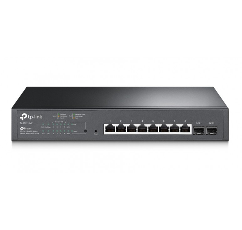 Το TL-SG2210MP είναι ένα switch επαγγελματικών προδιαγραφών που εξοπλίζεται με 8 θύρες δικτύου PoE+ και 2 θύρες SFP με ταχύτητες 10/100/1000Mbps.