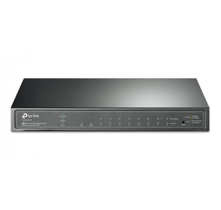 Το TL-SG2210P είναι ένα switch επαγγελματικών προδιαγραφών που εξοπλίζεται με 8 θύρες δικτύου PoE+ και 2 θύρες SFP με ταχύτητες 10/100/1000Mbps.
