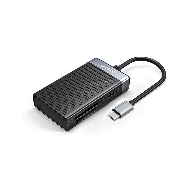 Card reader 4 σε 1 από την Orico, με 4 υποδοχές στις οποίες μπορείτε να τοποθετήσετε μια Micro SD, μια SD, μια CF και μια MS κάρτα μνήμης.